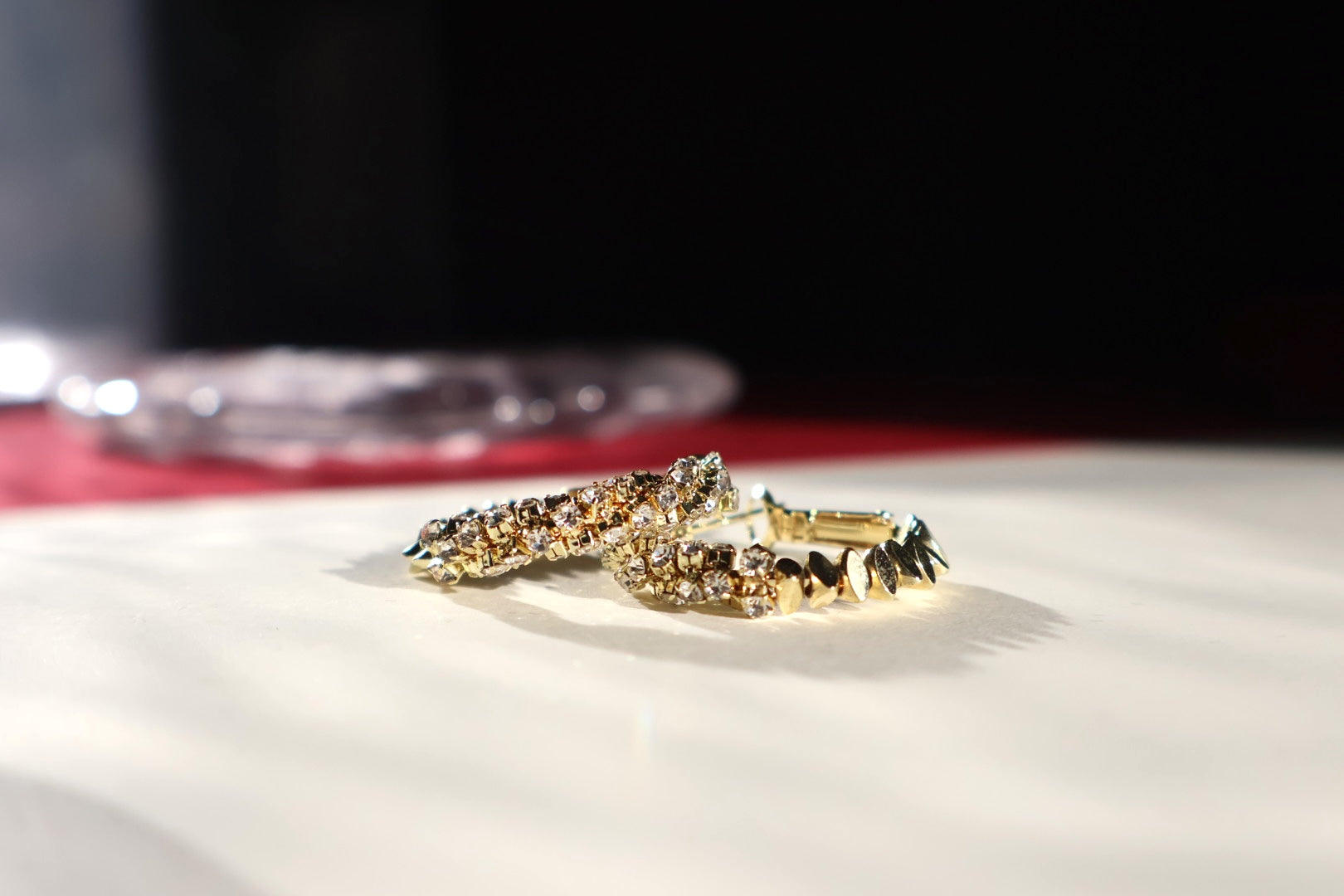 Elevate your style with our Crystal Luxe Golden Shard Hoops, a striking addition to the Crystal Luxe Collection. These unique earrings feature a modern fragmented texture crafted from a durable copper base, beautifully plated in radiant gold and accented with micro-set zircons for subtle, sophisticated sparkle. Finished with hypoallergenic S925 sterling silver posts, they promise both elegance and comfort.