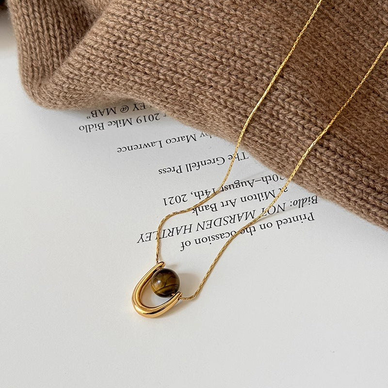 Vintage Rose Golden U-Shaped Tiger Eye Pendant Necklace