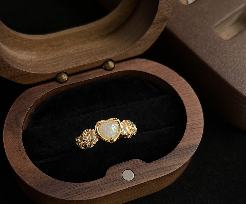 Embrace ethereal romance with our Vintage Rose Moonstone Heart Pendant, a captivating piece from the Vintage Rose Collection. This exquisite pendant features a luminous white moonstone carved into a delicate heart shape, accented with sparkling micro-set zircons that add a touch of timeless glamour. Crafted from high-quality copper with a luxurious gold finish, the adjustable chain ensures the perfect fit for any neckline.